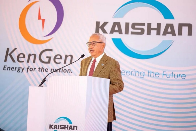 湯炎博士也在儀式上講話。他強調指出:我們已經為肯尼亞綠色工業化完成了兩個地熱電廠,開山Olkaria 地熱電廠和綠色化肥廠是開山在肯尼亞的下一個里程碑,是開山在清潔能源發展征程上又一個新的篇章。我們要使用肯尼亞能源公司的地熱蒸汽生產165 MW清潔電能,并用這一清潔電能制氫、生產綠氨,最終生產出超過48萬噸的綠色化肥。特別需要特別指出的是,開山Olkaria 地熱電廠是世界上第一座零排放的地熱電廠。地熱蒸汽中的不凝性氣體將被完全回收生產CO2,并送往綠色化肥廠作為生產尿素的原料。我們在創造歷史,零排放地熱發電廠的歷史,綠色化肥生產的歷史,非洲綠色工業化的歷史,并將激勵全球綠色能源和綠色工業化的發展。