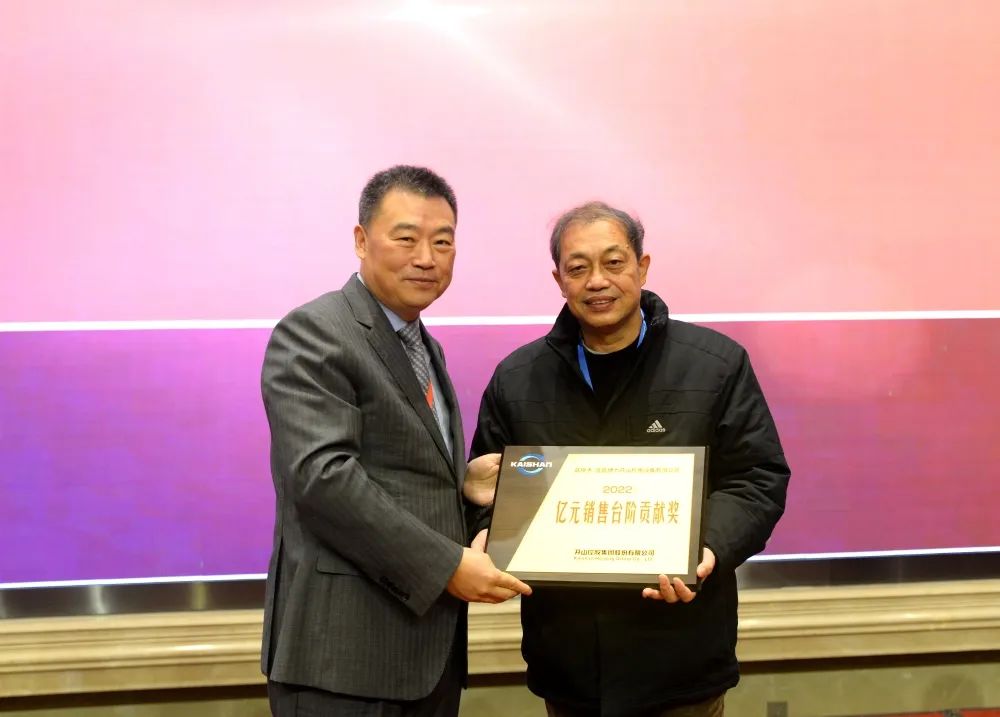 會(huì)議還向23位優(yōu)秀經(jīng)銷商頒發(fā)獎(jiǎng)牌。值得慶祝的是,2022年在較為困難的經(jīng)營(yíng)環(huán)境下,誕生了開山歷史上第一家年度銷售額過億的經(jīng)銷單位:宜昌博力開山機(jī)電設(shè)備有限公司。